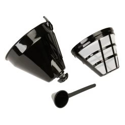 - Features: 12 Cup Capacity, Washable Filter, Keep-Warm Function, Glass Carafe (8″W x 6″D x 6.5″H), Sleek and Modern Design