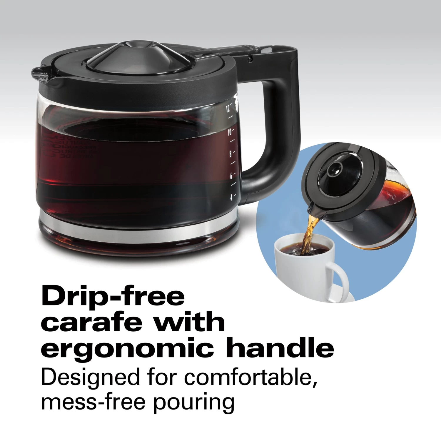The removable 60 oz. water reservoir with handle and swing‐open cone brew basket make this 12 cup coffee maker easy to fill. The charcoal water filter reduces chlorine for the best-tasting coffee
